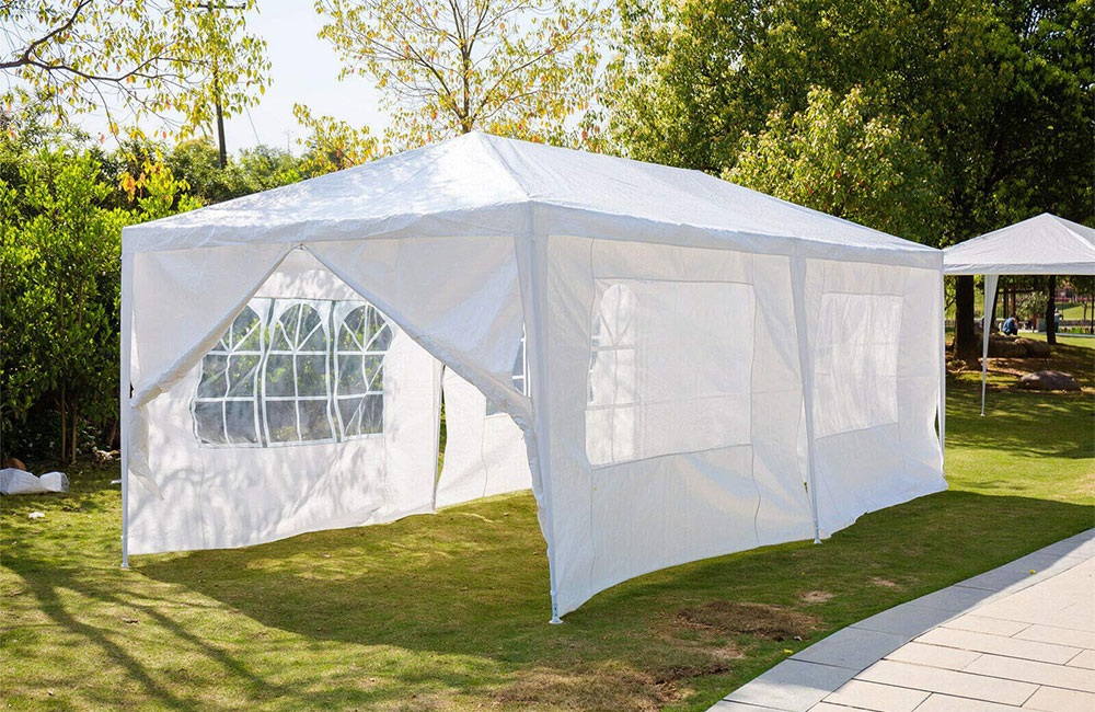 Em qualquer terreno se pode montar uma tenda. Mas lembre-se que tendas são estruturas modulares fixas, que devem se adequar ao seu ambiente. Ou seja, pequenos cantos ou reentrâncias ficarão ser cobertura, por não ser possível usar uma tenda ali.